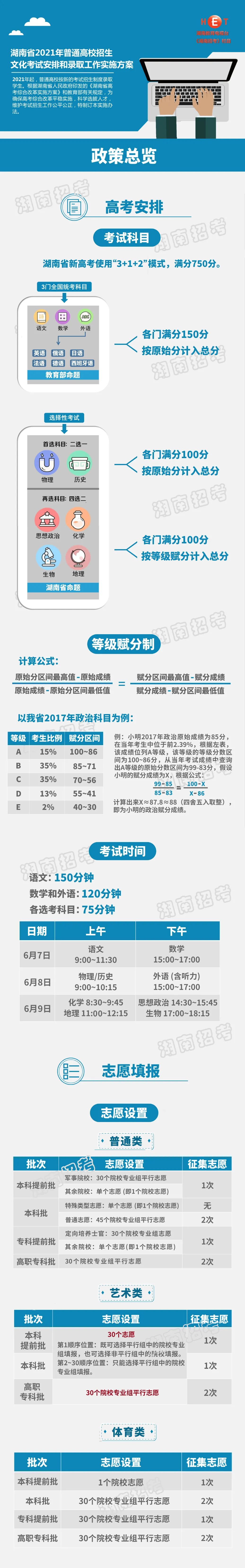 刚刚,《湖南省2021年普通高校招生文化考试安排和录取工作实施方案》正式发布,为了让大家更好地理解政策,招考君为大家精心准备了长图、电视访谈等系列解读,话不多说,先上图。