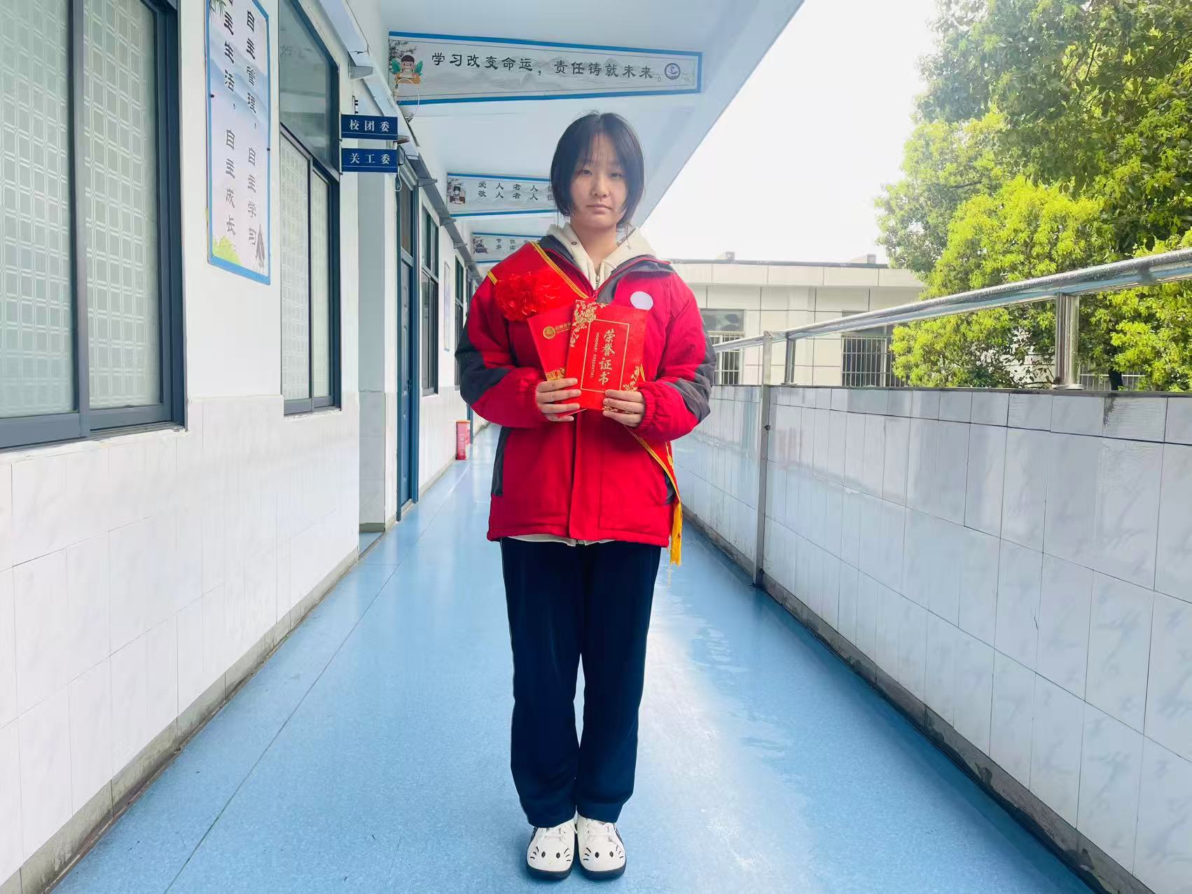 生活中,她乐观友善、乐于助人,处事沉稳细致,凭借良好的品德和全面的素养,赢得了师生的一致好评,是同学们公认的榜样。