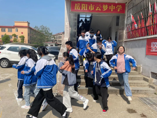 9:50分,警报声响起,同学们在班主任的带领下,陆续下楼赶到操场指定位置,第一次用时4分30秒。在疏散过程中,部分学生行动缓慢,秩序有点乱。经过对第一次演练的点评并做要求后,进行了第二次演习,用时4分钟,无论是用时和秩序上较第一次都有了明显的进步。