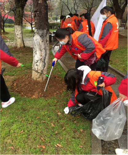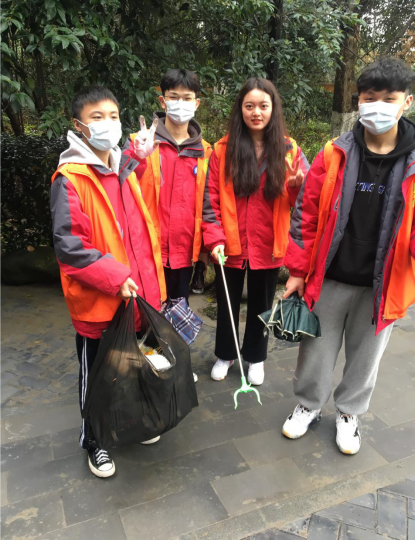 我校志愿者们发扬不怕脏不怕累的精神,眼睛盯着地面,搜寻可以捡拾的垃圾,将风景带两边的垃圾捡起放入垃圾袋中。经过一个多小时的劳动,每个人的垃圾袋中都已“战果累累”。