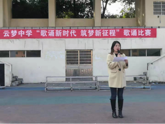 主持人宣布“歌诵新时代 筑梦新时代”歌诵比赛正式开始: