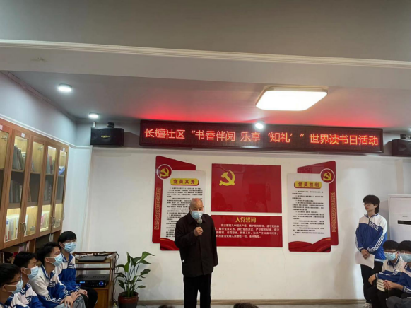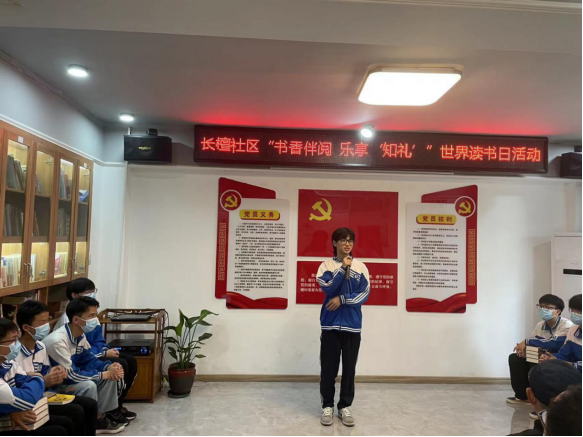 为了激励我校学生更积极地去读书,感受阅读带来的乐趣与魅力,我校参加了长檀社区组织的“书香伴阅 乐享‘知礼’”世界读书日活动,希望能够丰富我校学生文化生活,倡导全校阅读,弘扬尊重知识、崇尚文明风尚阅读理念。