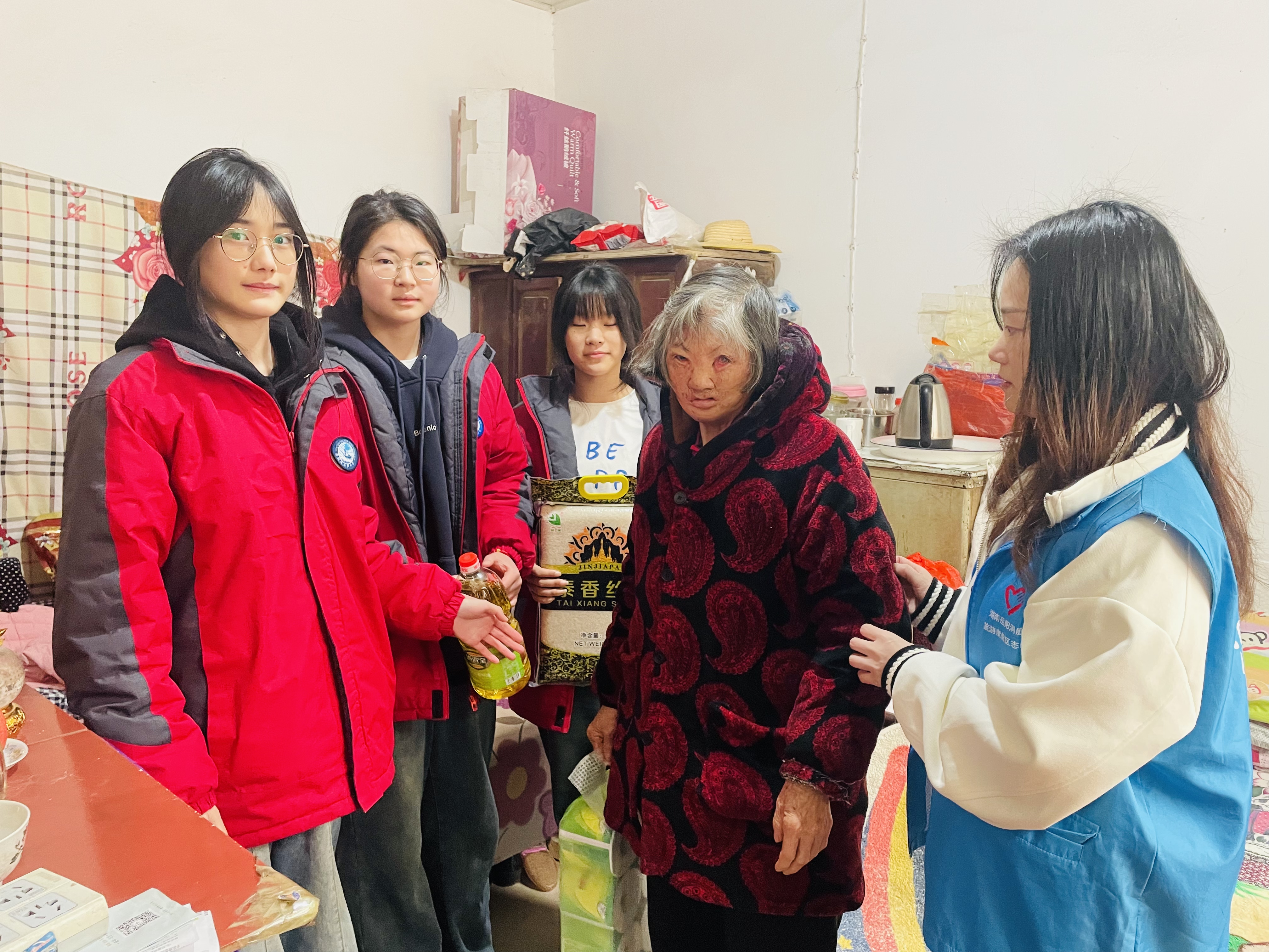 活动正式开始学生们在社区工作人员的带领下来到空巢老人家里给予他们最诚挚的问候与关怀