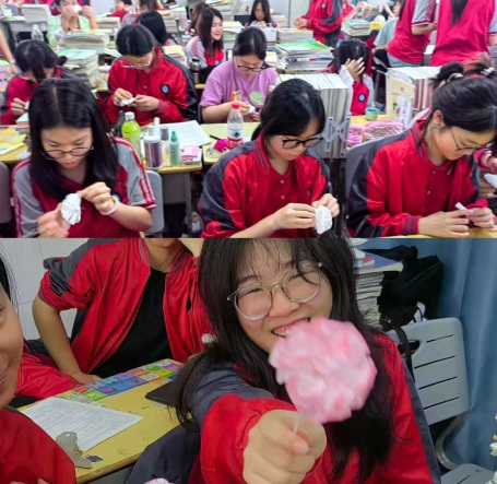2.“与‘粽’不同”包粽子。端午节期间,组织全校师生自己包粽子。活动设计蕴含深刻心理智慧,粽叶包容焦虑、丝线牵引情绪、慢火烹煮寓意释放。孩子们在动手实践中(卷-裹-捆)释放压力,体验专注协作的快乐,增进了同窗情谊。学弟学妹“一举高中”的祝福,更让校园洋溢着温暖支持的芬芳。这开创了“文化疗愈”的心育新路,让传统文化焕发出滋养心灵的新活力。