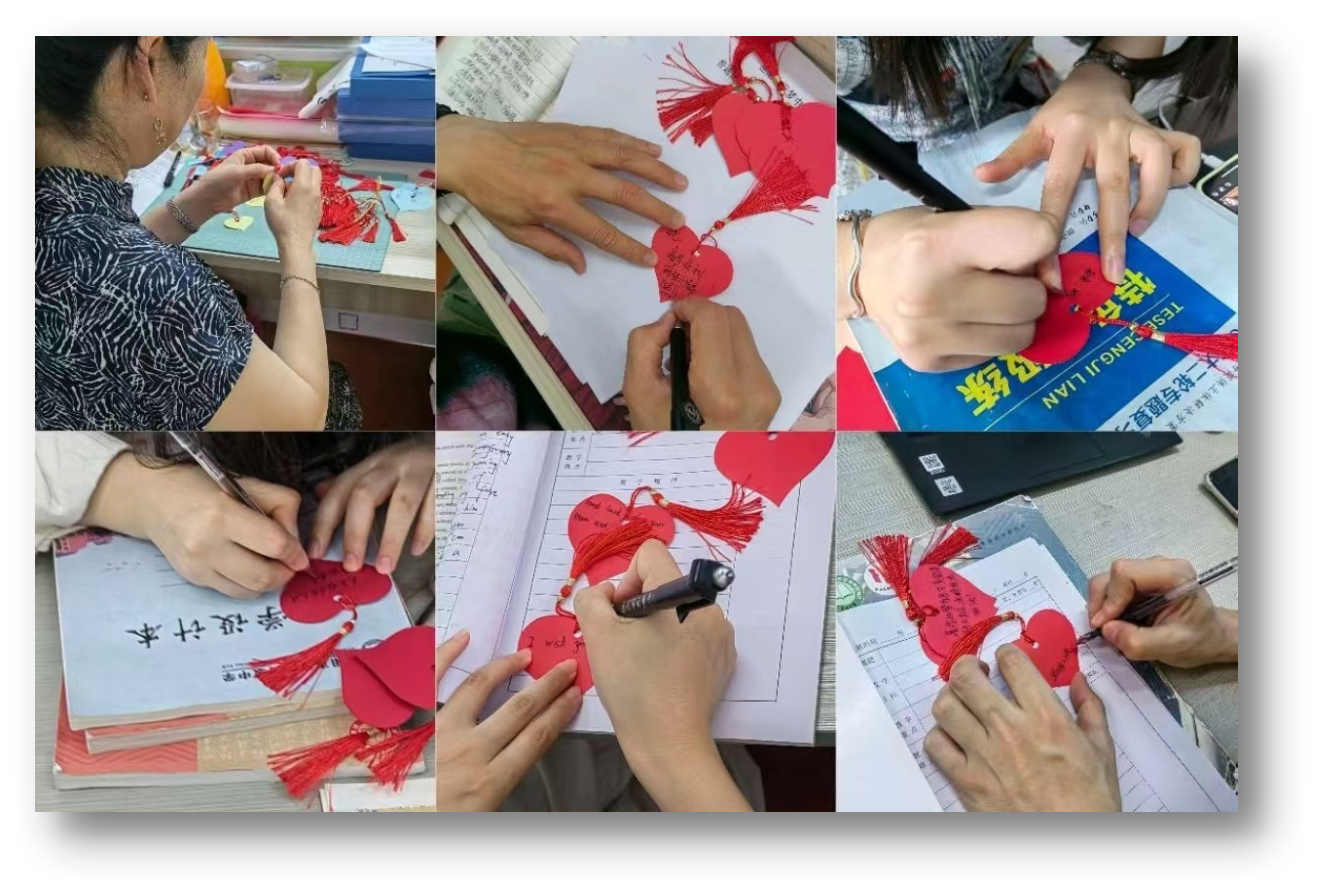 贯彻岳阳市教体局《关于开展2005年岳阳市中小学“心理健康月暨首届“家校社协同育人宣传月”活动的通知》文件精神,我校立足学生学习基础相对薄弱、行为习惯有待提升、学习动力不足等实际,以“心理健康月”为契机,坚持“文化浸润式”心育,“新媒体赋能式”宣传,“情感支持型”备考,“问题导向型”师育,“真实需求驱动”实施,设计“感恩不止母亲节”承诺墙,“与‘粽’不同”包粽子,制作高考加油视频、减压手工艺术作品,教师亲手书写、精心制作祝福卡,“看见微光、重塑价值”教师心理赋能沙龙,通过家长群、公众号活动美篇向家长、社会推送美文美篇等“七个一”特色鲜明的系列活动。串起强劲的情感支持链,奠定了常态化师育基础,开创了传统文化与育心融合,形成了多元平台与心育共建的教育实践新路径;有效营造了良好的育人氛围,实现了传递知识,点燃希望、凝聚力量,赋能教师,家校社之爱有效汇聚的初衷。
