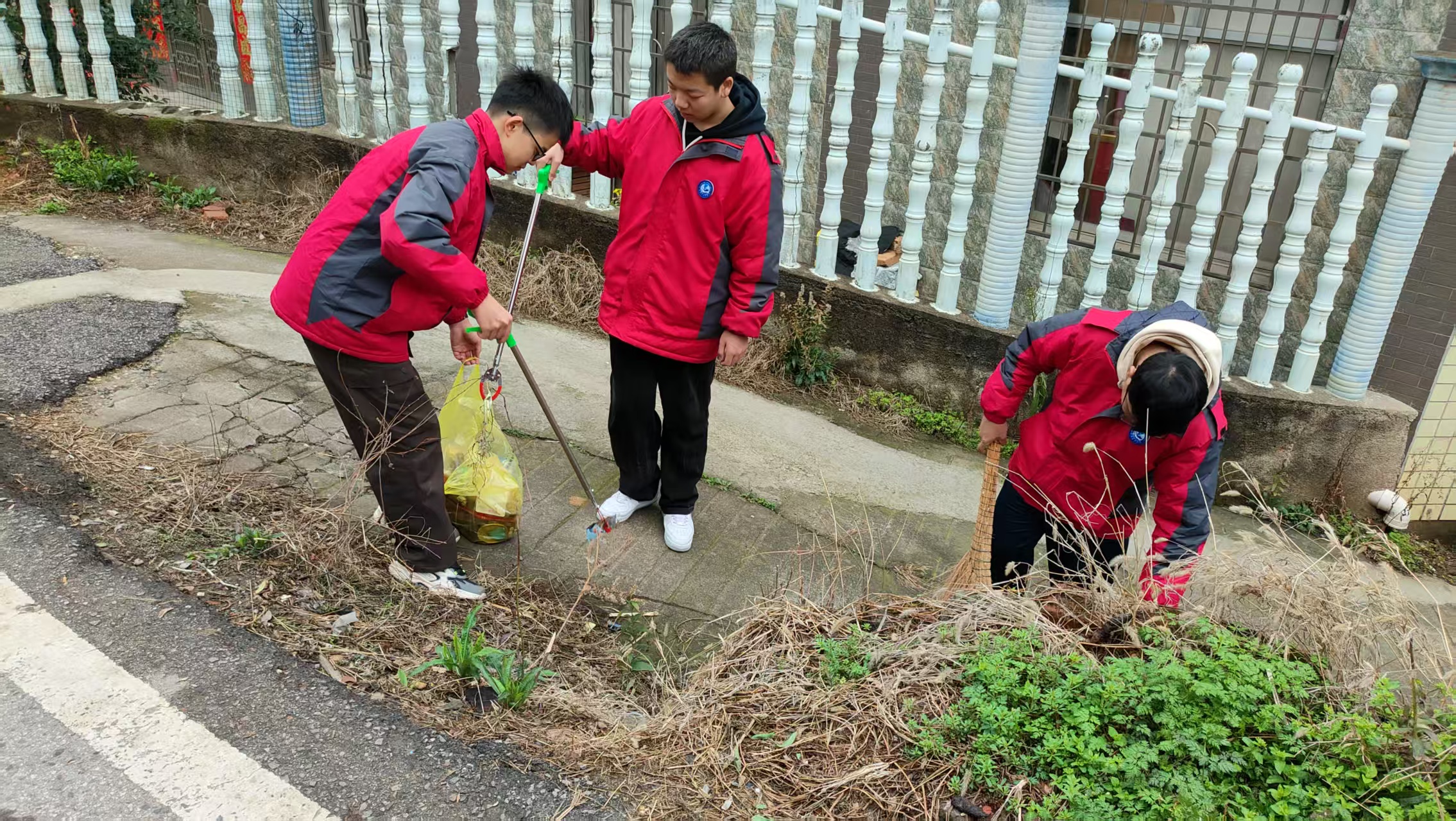 慰问完老人后,志愿者队伍又在社区内展开了环境卫生清扫行动。大家手持清洁工具,穿梭在社区的各个角落。有的同学清理绿化带中的垃圾杂物,有的擦拭公共设施,还有的清除楼道和小区内的小广告。在清理过程中,志愿者们不怕脏、不怕累,认真对待每一个卫生死角,将社区环境打扫得干干净净。在清理社区环境的过程中,大家发扬了不怕苦、不怕累的精神,明白了保护环境需要从身边小事做起。