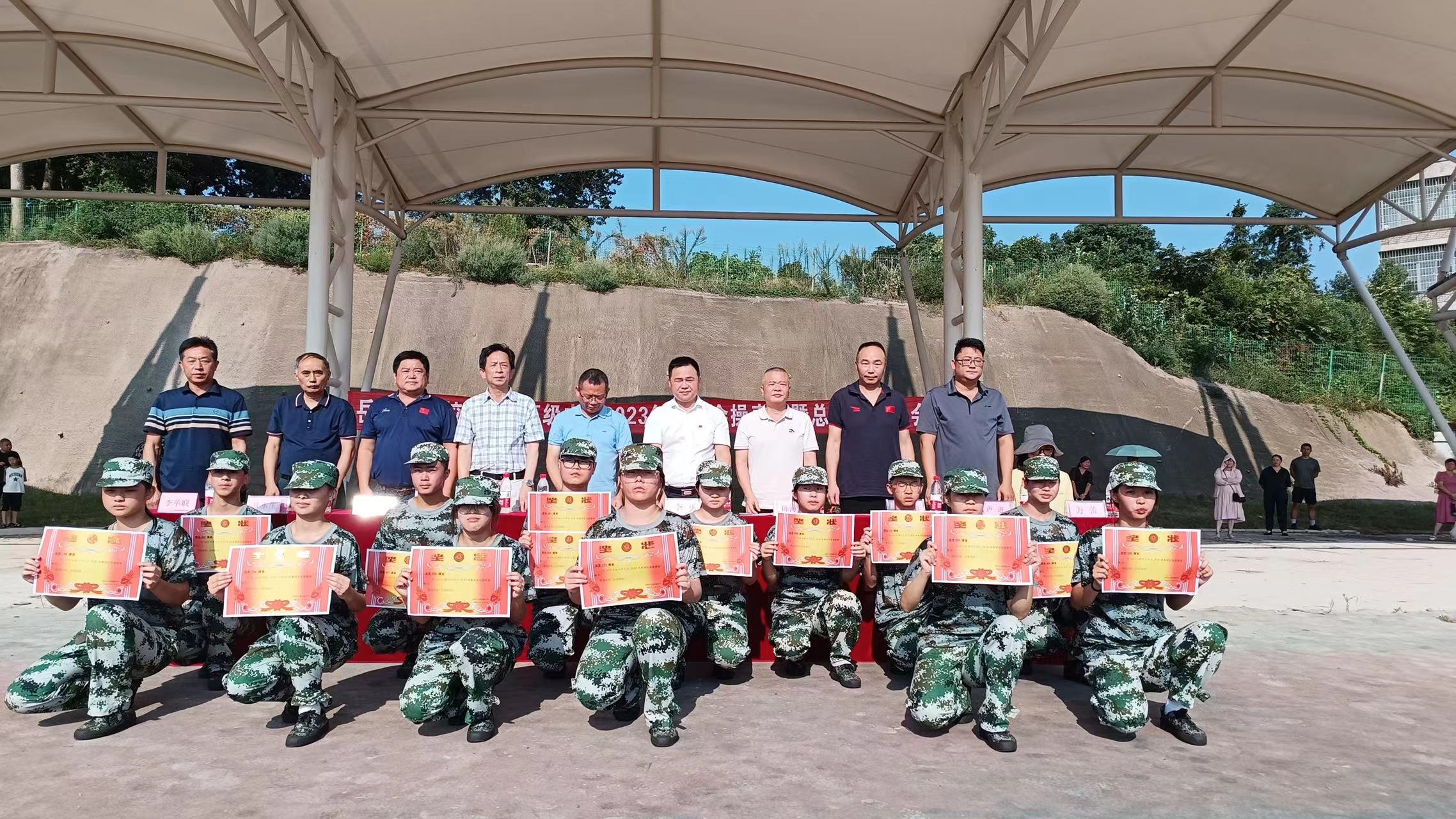会操表演结束后,陈校长为在军训中表现突出的优秀集体和先进个人进行了表彰,表扬了同学们在军训中坚持不懈、勇于克服困难、坚韧不拔的精神,鼓励同学们把军训精神带到以后的学习生活中去,一丝不苟、勤学苦练、迎难而上。