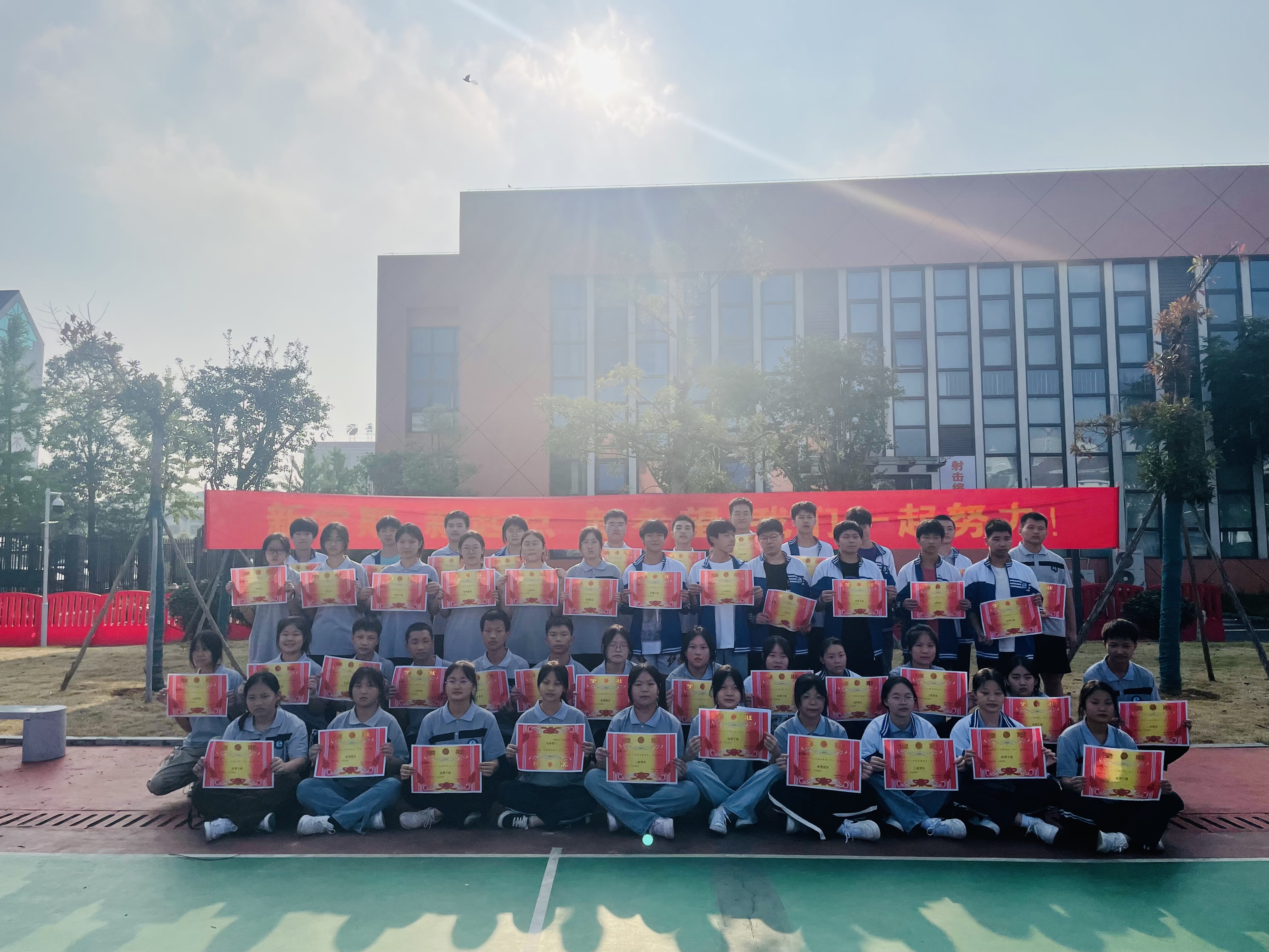 德育处李革联副校长宣布高二高三年级获奖学生名单,并由校级领导为学生颁奖。