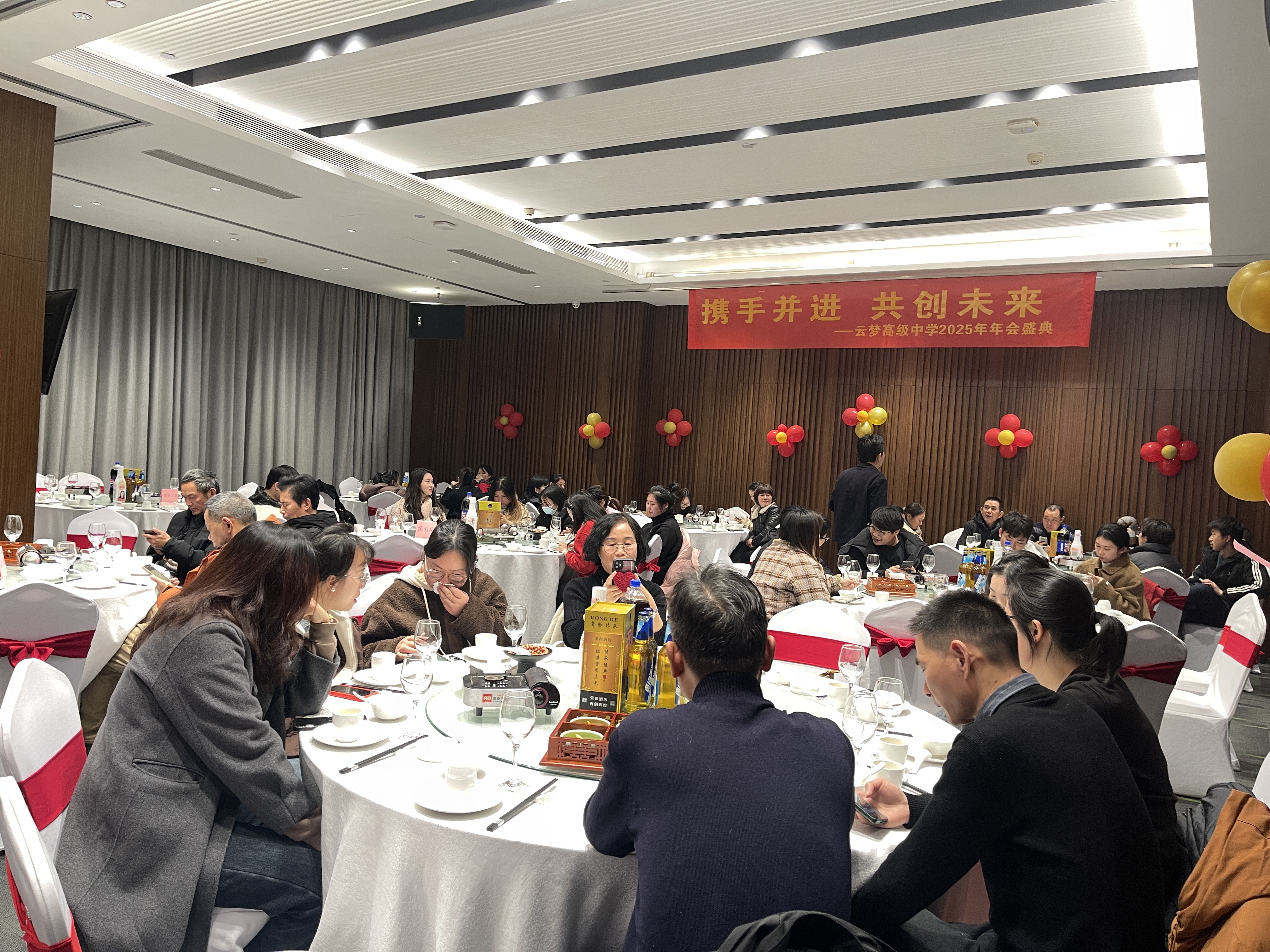 新春的脚步临近,金蛇舞动,带来祥瑞与希望。在这辞旧迎新的时刻,为加强教职工之间的交流,增强凝聚力,丰富业余生活,提升归宿意识,从而进一步调动教职工的工作积极性,我校于1月15日在希尔顿欢朋酒店隆重举行了2025年度盛会,一同开启充满期待的新征程,迎接新年的到来!年会由温昌琼、刘嘉欣老师主持。