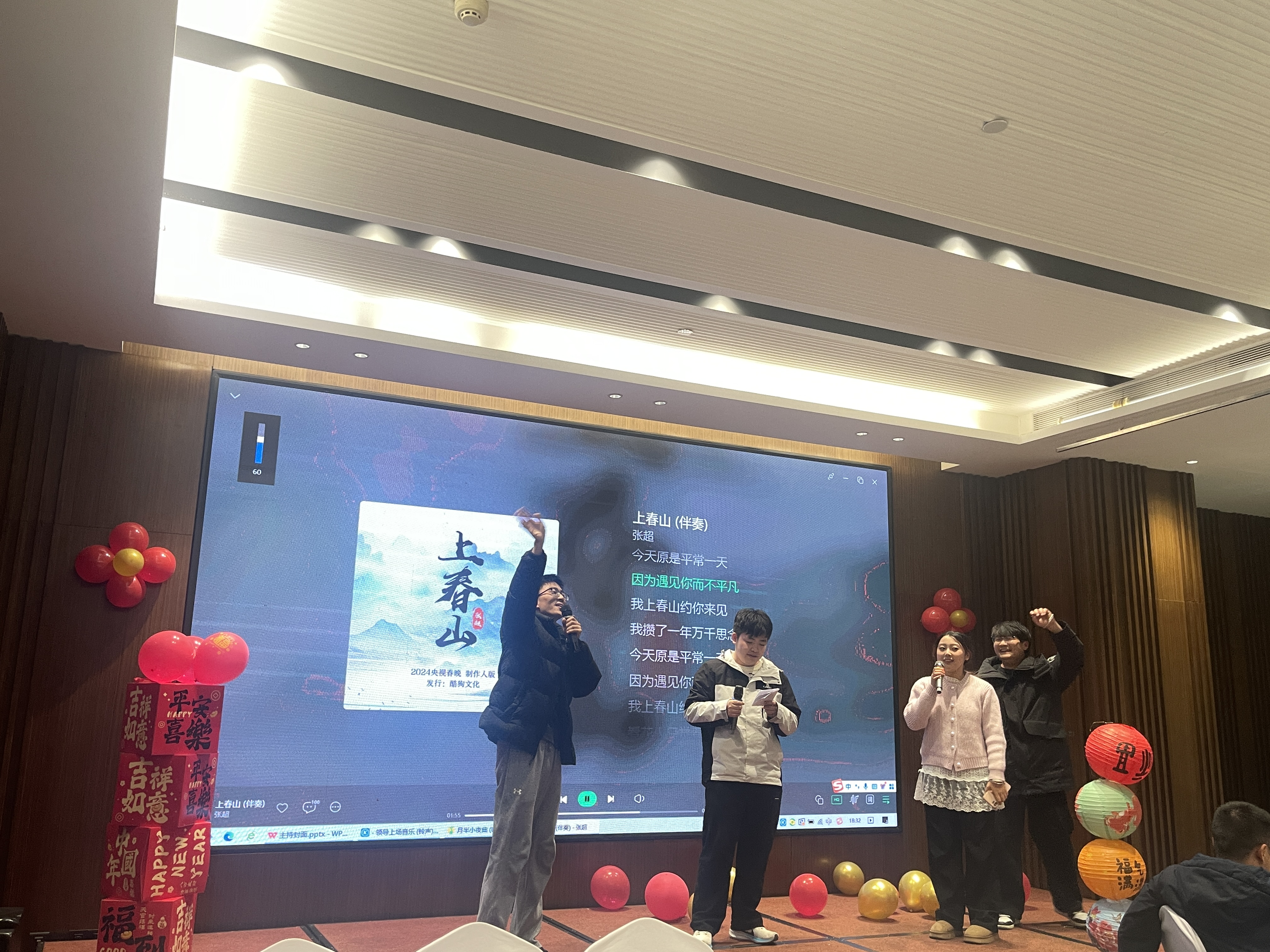 为了丰富活动形式,老师们暂时放下教鞭,换上华服,用另一种方式展现他们多才多艺的一面,共同迎接充满希望的新篇章,让在场的每一位教职工都感受到节日的欢乐氛围。温昌琼、刘光宇老师代表高三年级组带来了一首《月半小夜曲》;袁铭泽、刘光宇、伍俊伟、代孟娜老师代表高二年级组带来了一首《上春山》;张烨老师代表高一年级组带来了一首《爱拼才会赢》;曹军副校长和音乐专业老师任巧带来了一首《东方之珠》。