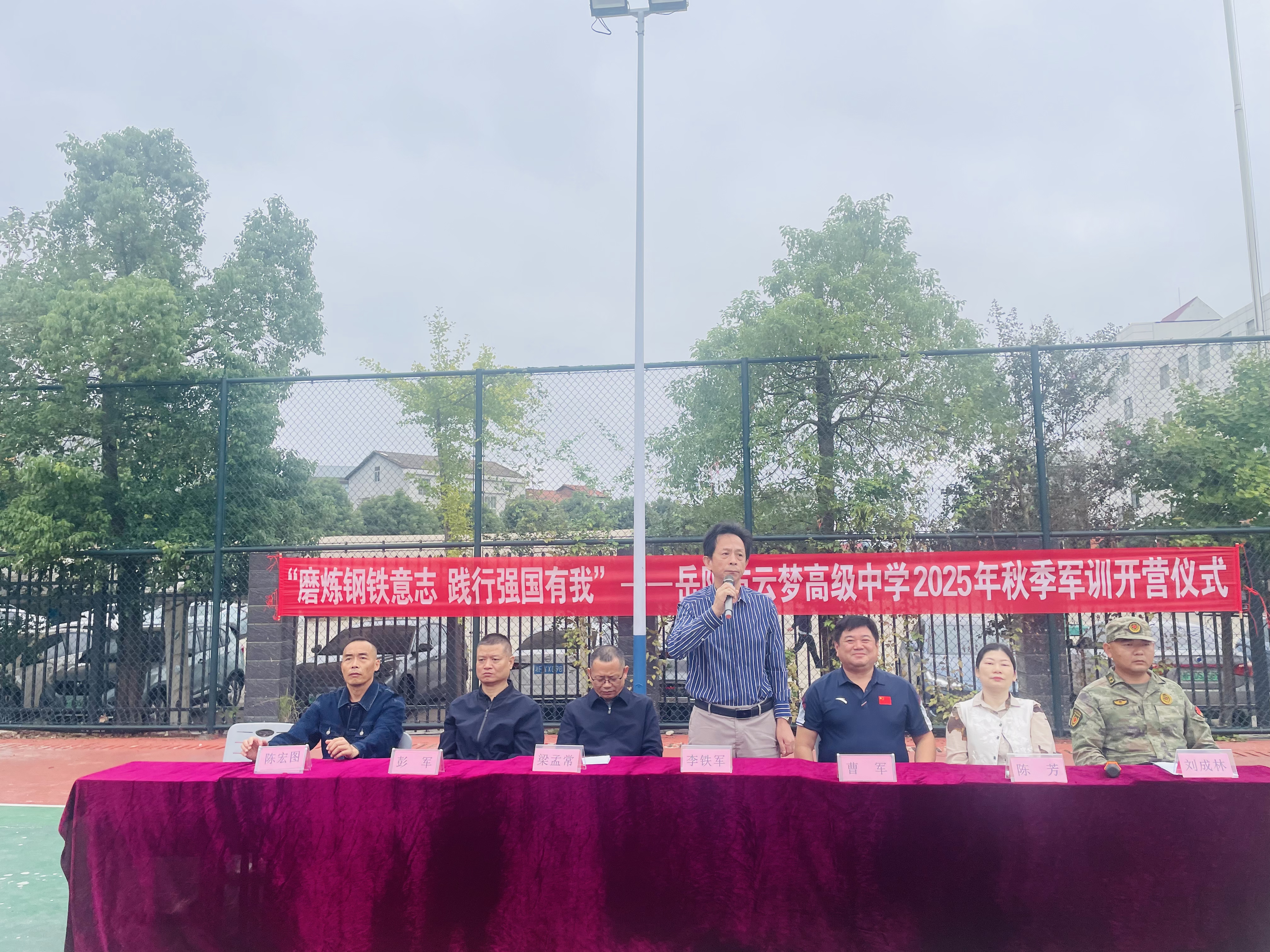梁校长表示军训是贯彻落实国家教育方针的重要举措,是高中生必修的一堂社会实践课,更是同学们成长历程中一段宝贵的人生经历。梁校长强调军训不仅是为了增强体质,更是为了培养同学们的国防意识、纪律观念和集体荣誉感。他深情寄语全体同学:把“怕吃苦”转为“敢坚持”;把“个人”融入“集体”;把“命令”当作“养成”;把“严格”看作“关爱”;把“安全”放在“心头”。他希望同学们珍惜这次锻炼机会,以饱满的热情、昂扬的斗志投入训练,展现云梦学子奋发向上的精神风貌。
