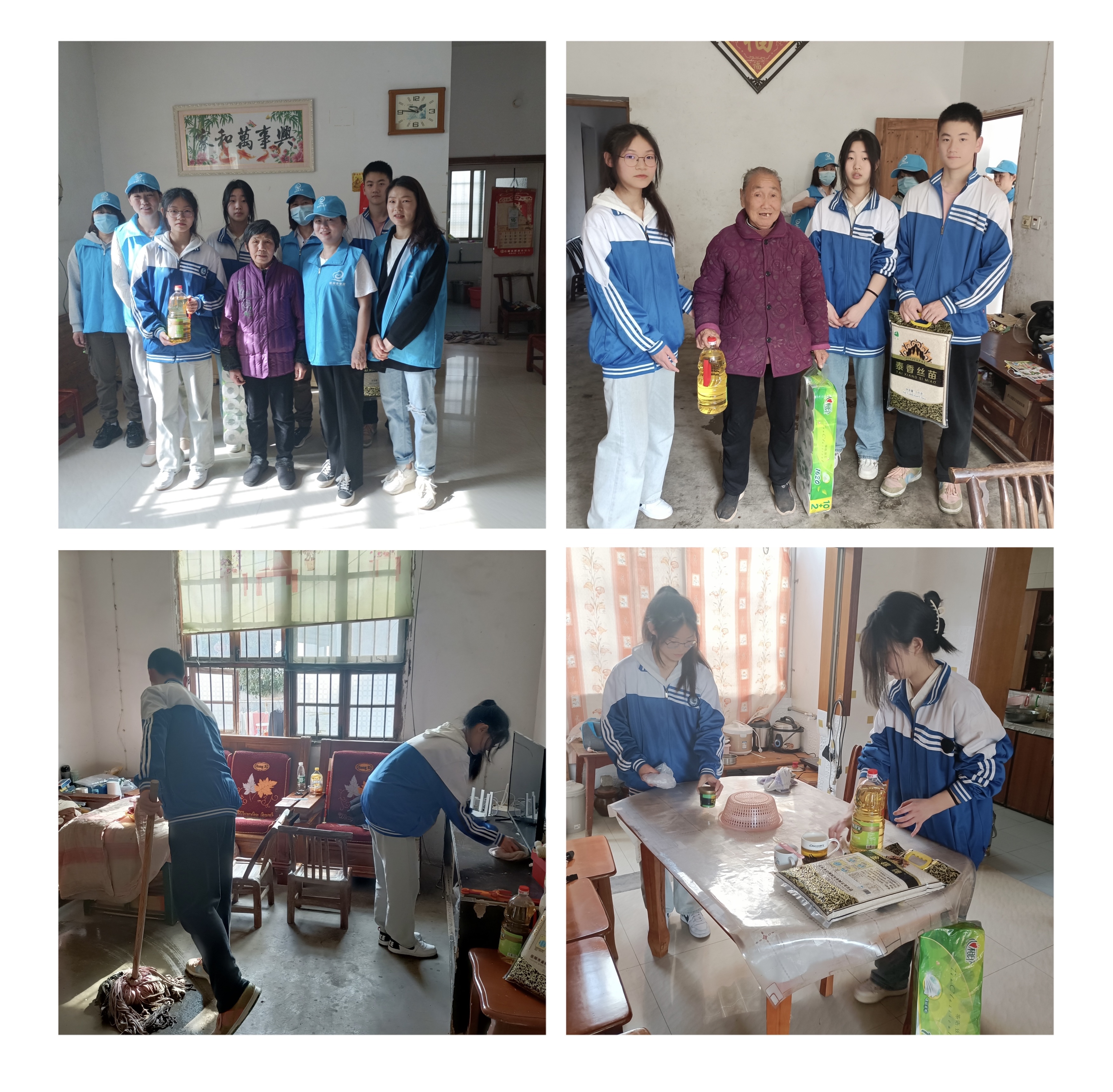 志愿者们带上购买的大米、食用油和卫生纸深⼊各空巢⽼⼈的家庭,与⽼⼈们热情交谈,关⼼⽼⼈的⽣活状况和⾝体状况。帮助⽼⼈打扫卫⽣,与⽼⼈合影留念。⽼⼈们对我们的到来感到⾮常开⼼,连连表⽰感谢。我们陪着⽼⼈们聊天,听他们讲过去的历史,听他们诉说⾃⼰内⼼的空虚,听他们反映⽣活的困难,听他们感谢当今美好的⽣活。我们跟⽼⼈们谈学校的日常生活,跟他们聊社会趣闻,对他们进⾏⼼理疏导,帮助他们解开⼼结,快乐⽣活。
