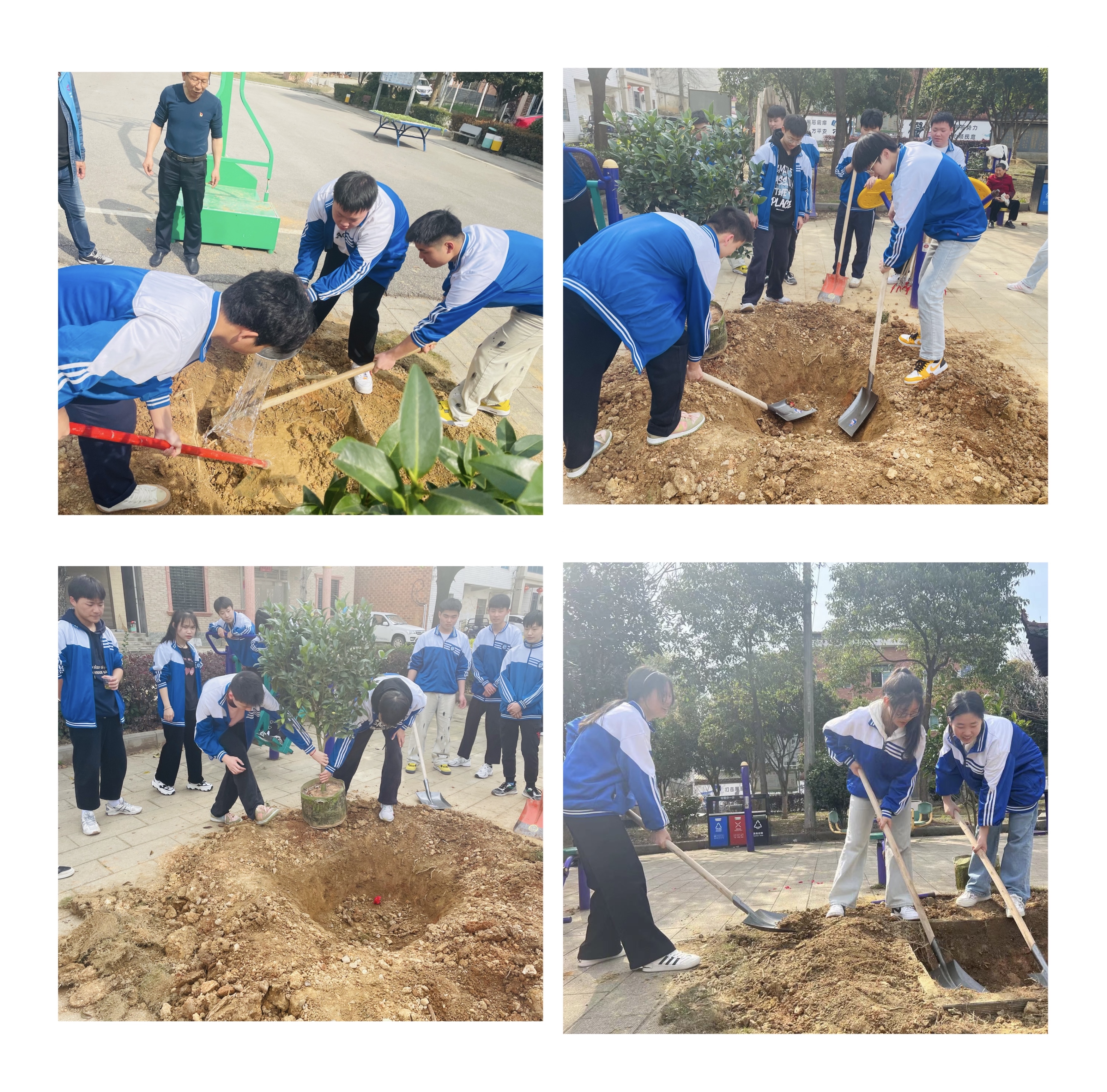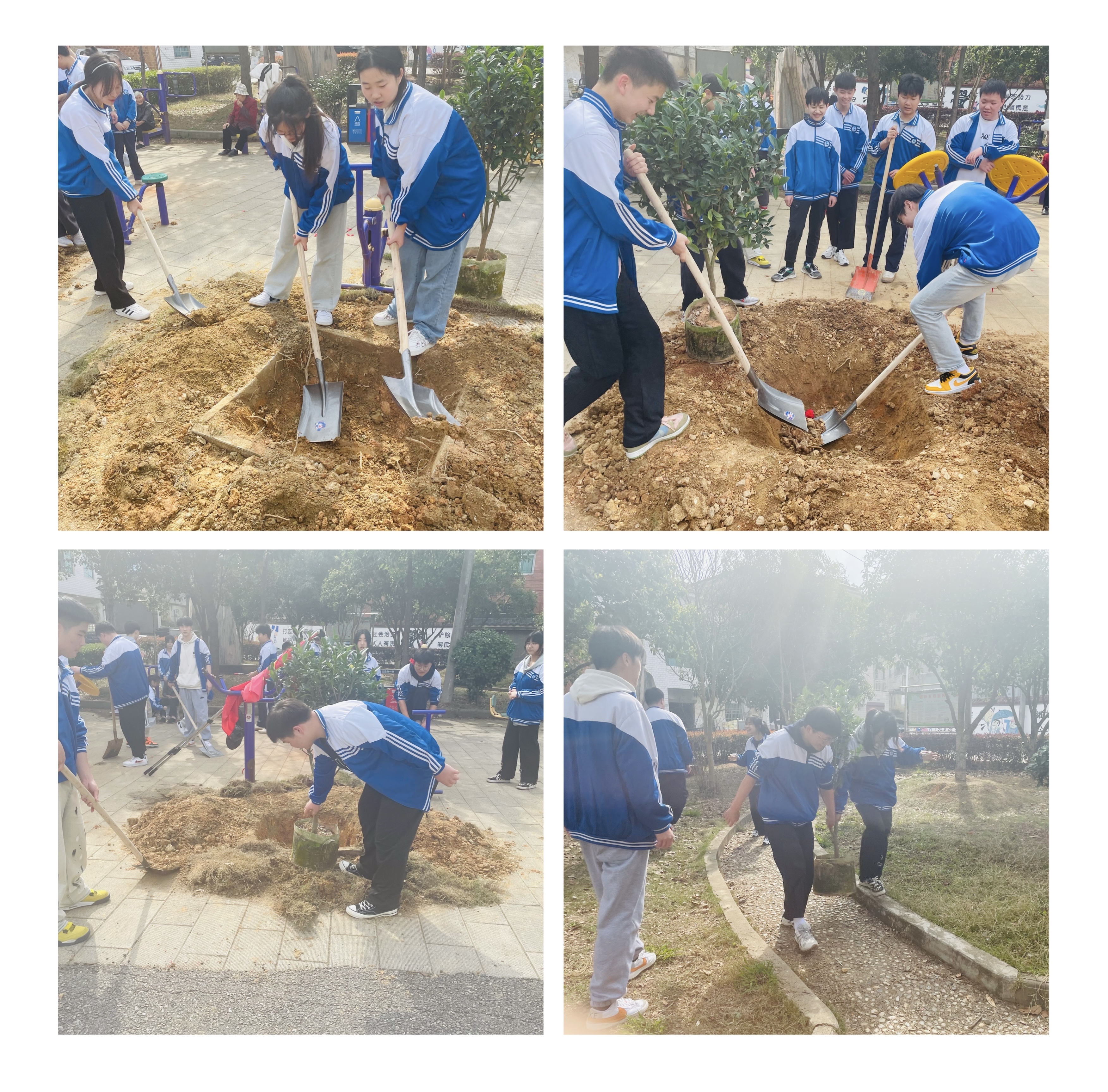随后,我们便和社区工作人员一起开始植树。学生们分工明确,干劲十足,现场气氛和谐而不乏热烈,他们围着分配到的树苗,热情洋溢地当起了园艺工人,大家分工合作,有的抬树苗入坑,有的用铲子填土。就这样你一铲我一锹,不一会儿爱心之树便屹立在了长檀社区。在大家的辛勤劳动下,无数株鲜活的生命在微风的吹拂下仿佛吐出了点点绿芽,春天的讯息在枝头跳动,大家植树的激情在心底跃动。