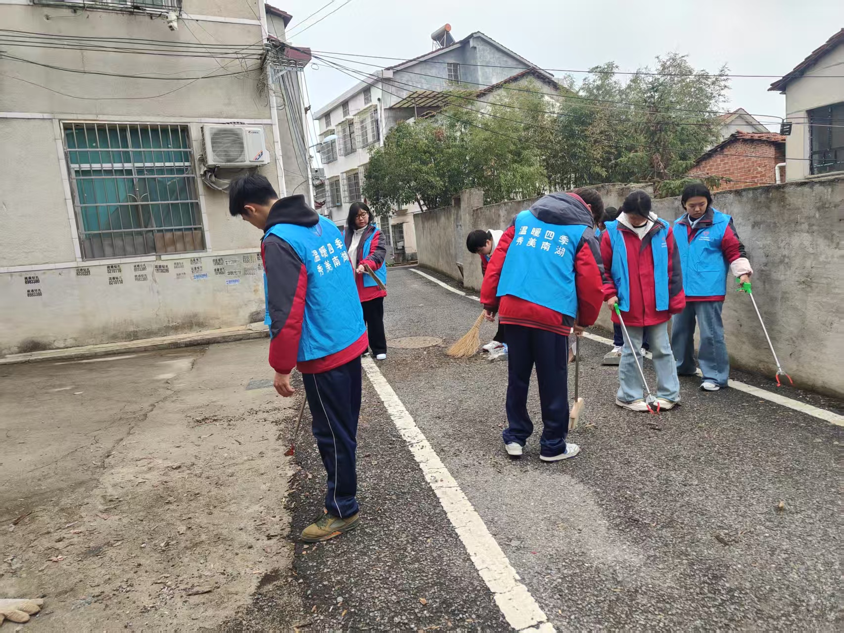 慰问完老人后,志愿者队伍又在社区内展开了环境卫生清扫行动。大家手持清洁工具,穿梭在社区的各个角落。有的同学清理绿化带中的垃圾杂物,有的擦拭公共设施,还有的清除楼道和小区内的小广告。在清理过程中,志愿者们不怕脏、不怕累,认真对待每一个卫生死角,将社区环境打扫得干干净净。在清理社区环境的过程中,大家发扬了不怕苦、不怕累的精神,明白了保护环境需要从身边小事做起。